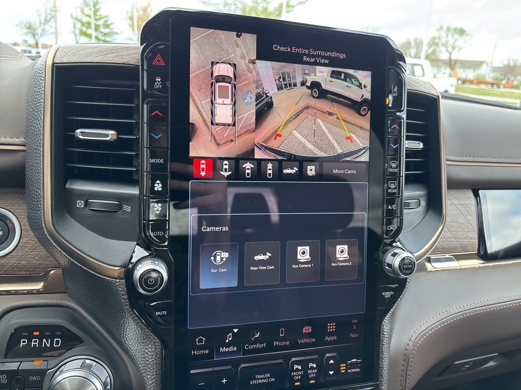 Step inside and you'll find Bison Brown Premium Filigree Leather Seats, Ventilated driver and front passenger seats, Heated rear seats, a Heated steering wheel, and a massive 14.4 inch primary display powered by Uconnect 5 NAV all wrapped in Longhorn luxury.