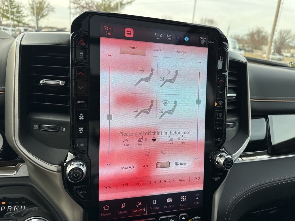 Premium Features: Indulge in ventilated and heated front AND rear seats, heated steering wheel, and luxurious leather upholstery. The massive .-inch touchscreen with integrated navigation and wireless Apple CarPlay/Android Auto keeps you connected. Enjoy the dual-pane sunroof and innovative RamBox integrated storage for ultimate utility.