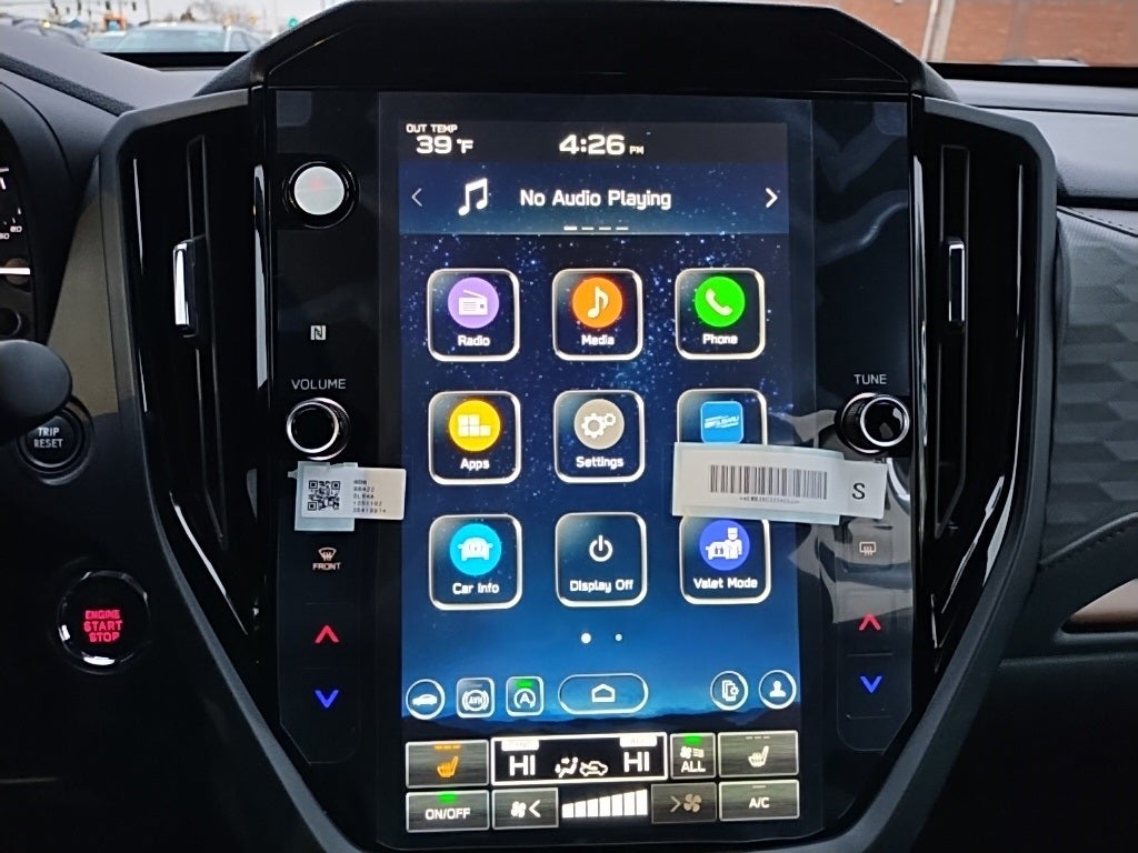 - Radio: Subaru 11.6" Multimedia Plus System -inc: valet mode, integrated center information display, AM/FM stereo HD Radio, multi-touch gesture high resolution display screen, voice activated controls, Bluetooth® audio streaming and hands-free phone connectivity w/SMS text messaging (refer to Subaru.com for cellphone compatibility), iPod control capability, smartphone integration: Android Auto and Apple CarPlay w/full screen view and wireless connection, USB and Over The Air (OTA) audio system update, steering wheel controls, 6 speakers, 3.5mm auxiliary input jack and roof mounted audio and satellite antenna