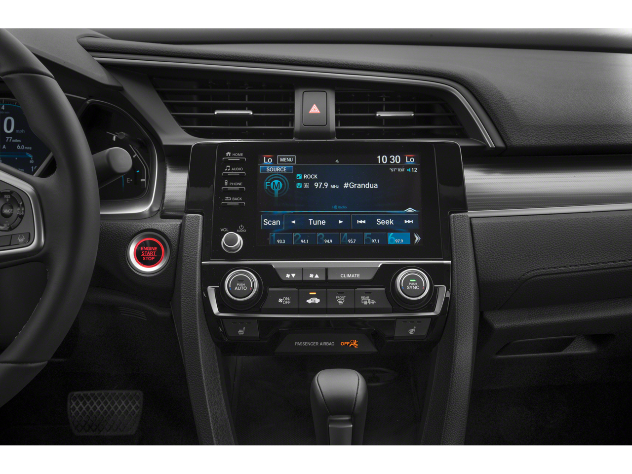 - Radio: 180-Watt AM/FM/HD/SiriusXM Audio System -inc: 8 speakers, 7-inch display w/high-resolution electrostatic touch-screen, knob and hard keys for primary controls and customizable feature settings, Bluetooth® HandsFreeLink, Bluetooth® streaming audio, radio data system (RDS), speed-sensitive volume compensation (SVC), 1.5-amp USB smartphone/audio interface in front, 1.0-amp USB audio interface port in center console, HondaLink, Apple CarPlay integration, Android Auto integration, SMS text message function, fin-type roof-mounted antenna and illuminated steering wheel-mounted controls